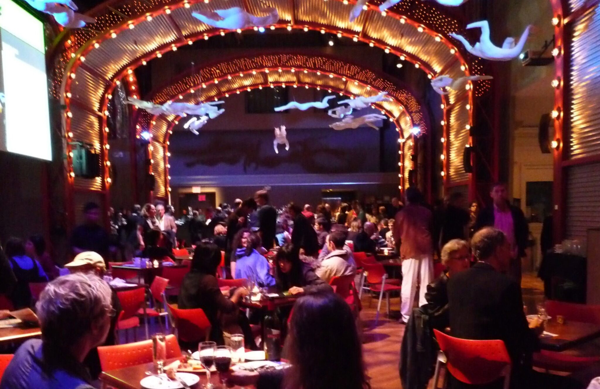 The buildings of the Brooklyn Academy of Music were designed in the neo-Italian style of cream-colored brick. They include three main performance spaces – the Howard Gilman Opera House, with a capacity of 2,109 seats, the Harvey Lichtenstein Theater with 874 seats, and a local cafe formerly called Lepercq Space. They also include an old ballroom converted in 1997 into a restaurant and live music venue.